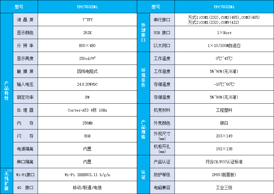 TPC7032Ni,是以ARM多核CPU为核心、主频1GHz的智能物联网触摸屏,该产品设计采用7英寸TFT液晶显示屏,分辨率800*480,四线电阻式触摸屏,同时还预装了McsgPro组态软件(运行版)。